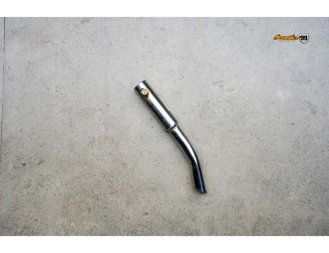 The Chrome Exhaust Tail Pipe Extension for Classic Vespa is a curved, chrome-plated outlet designed to refine both the look and function of your scooter's exhaust system. Built from heat-resistant steel with a polished mirror finish, it helps direct exhaust flow away from the rear panel, reduces soot buildup, and adds a clean, period-correct detail to vintage Vespa builds. A built-in brass locking screw allows for easy clamp-on installation without welding or cutting.