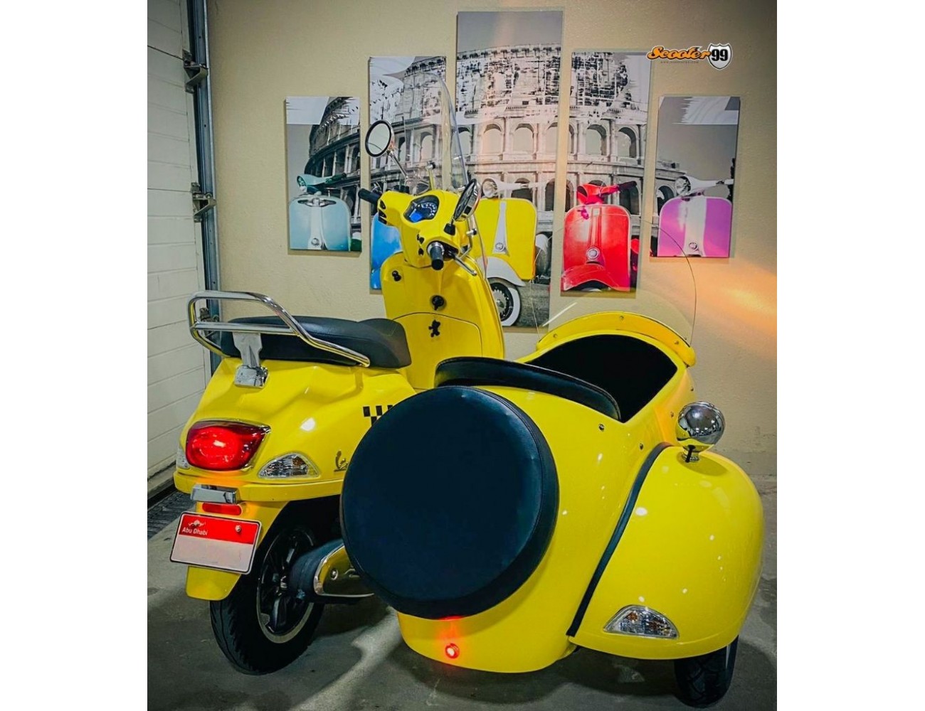 The Sidecar Kit Yellow Classic Edition by Scooter99 blends timeless European curves with modern craftsmanship. Built on a 3/4‑inch seamless tubular steel frame and a hand‑laminated fiberglass body, this detachable sidecar delivers durability, balance, and style. Its gloss yellow finish, black leatherette seat, and compact windscreen create a cheerful look made for city cruising, weekend touring, and lifestyle photography.
