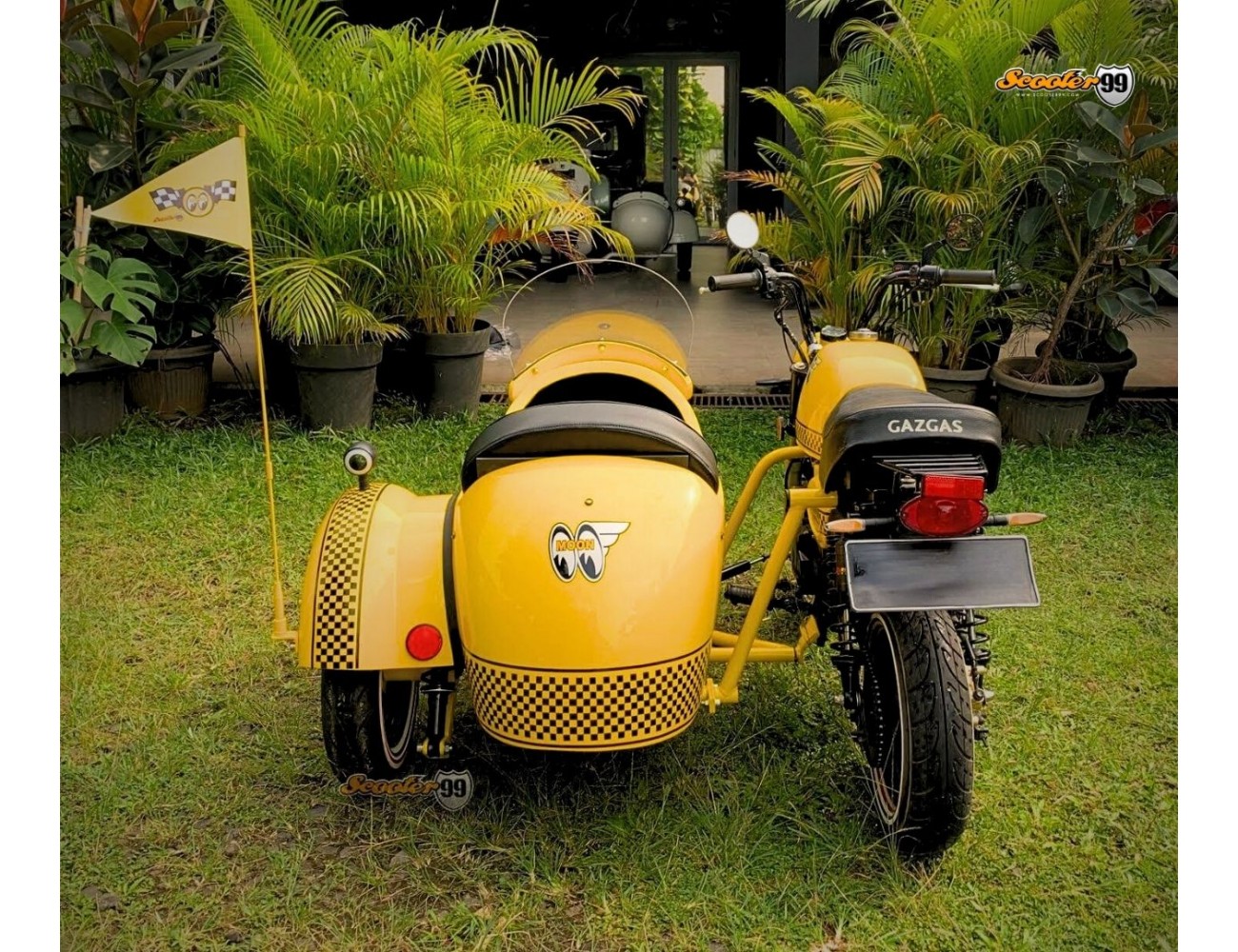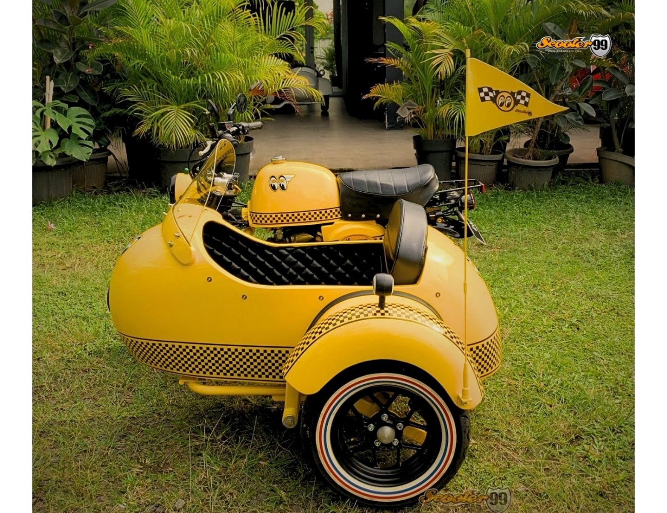 Tags: Sidecar Kit MOON Eyes Edition, Scooter99, custom sidecar, MOON Eyes Inspired, Custom Retro Sidecar, Handcrafted Motorcycle Sidecar, Yellow Sidecar, Racing Checkerboard Style, Gazgas Gorilla Sidecar, Honda Monkey Sidecar, Vintage Scooter Accessory