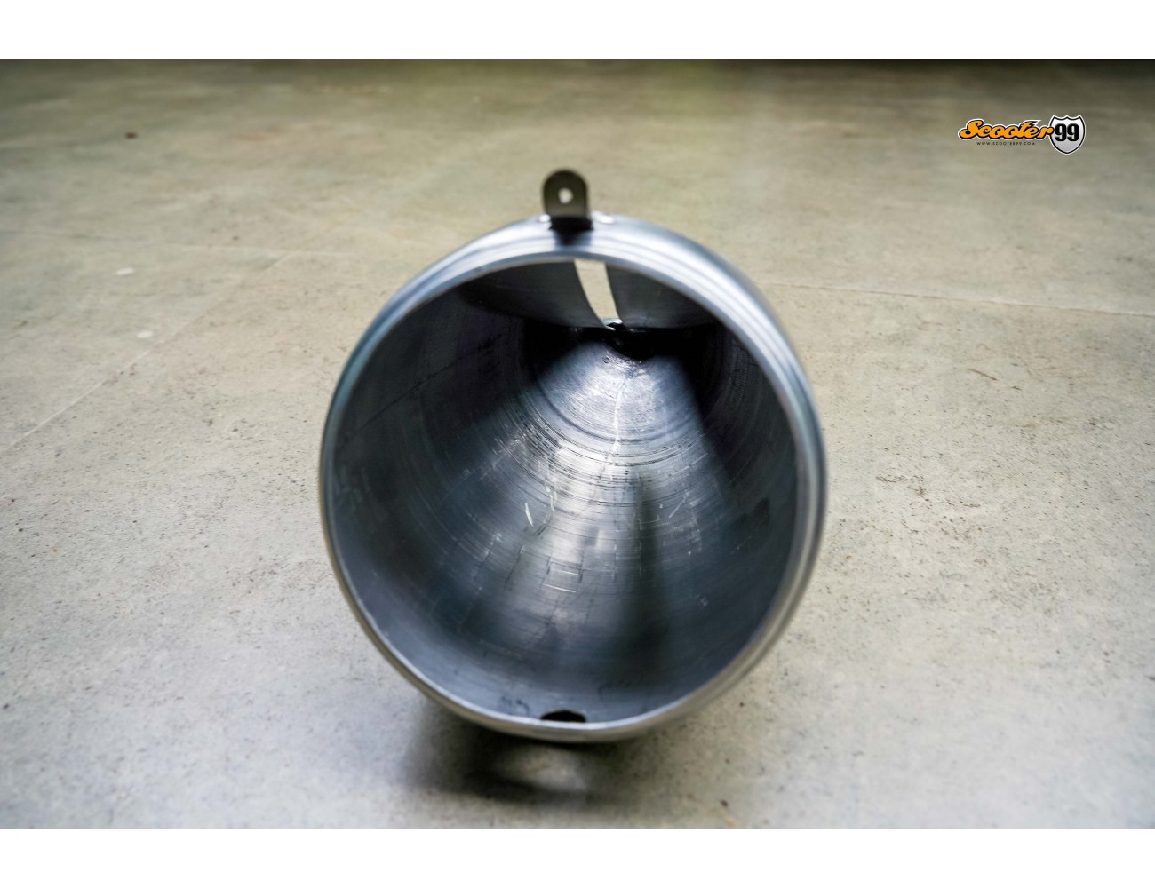 The Vespa Faro Basso Headlight Shell is a handcrafted raw-metal headlamp housing designed for early Vespa models. Shaped from 1.2 mm mild steel with a brushed finish, it keeps the original 1950s Faro Basso silhouette while offering modern durability. The shell comes in bare metal so you can leave it industrial, polish it, or paint it to match your scooter’s bodywork. Each unit is individually formed at the Scooter99 workshop in Jakarta, with a front lip, rear wiring slot, and mounting tab that follow classic Faro Basso geometry. Ideal for restoration projects, display builds, or custom sidecar setups that need a period-correct headlight housing with honest metal craftsmanship.