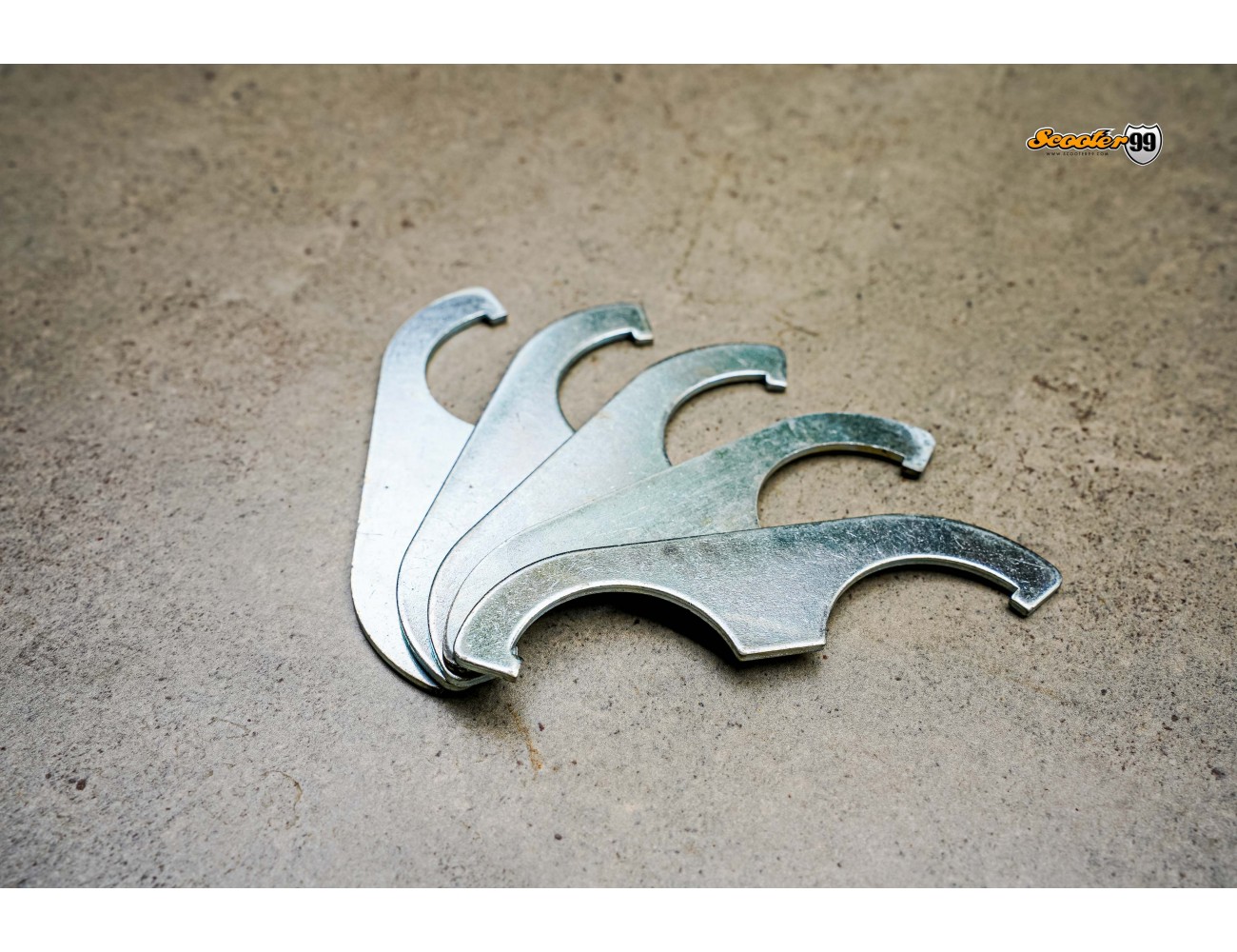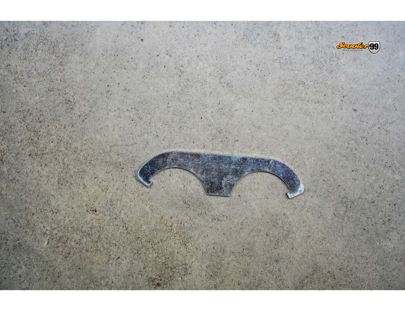 The Rear Hub Lock Plate for Vespa — also known as a cam washer — is a small but essential part that keeps the rear hub nut securely locked in place. Made from corrosion-resistant galvanized steel, it prevents the hub nut from loosening during riding, helping your classic Vespa stay safe, stable, and true to factory specification. Ideal for restorations, daily commuters, or workshop stock.
